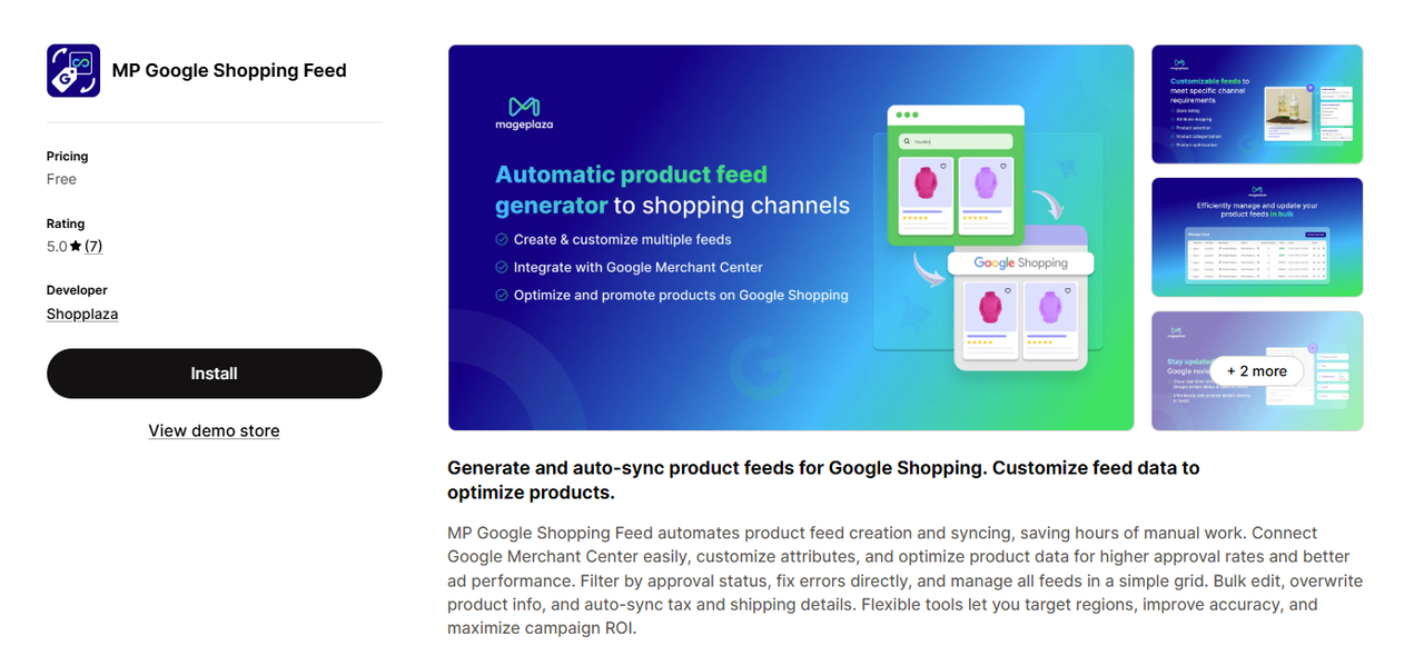 MP Google Shopping Feed by Shopplaza is a powerful app that automates the creation and management of product feeds for Google Shopping.