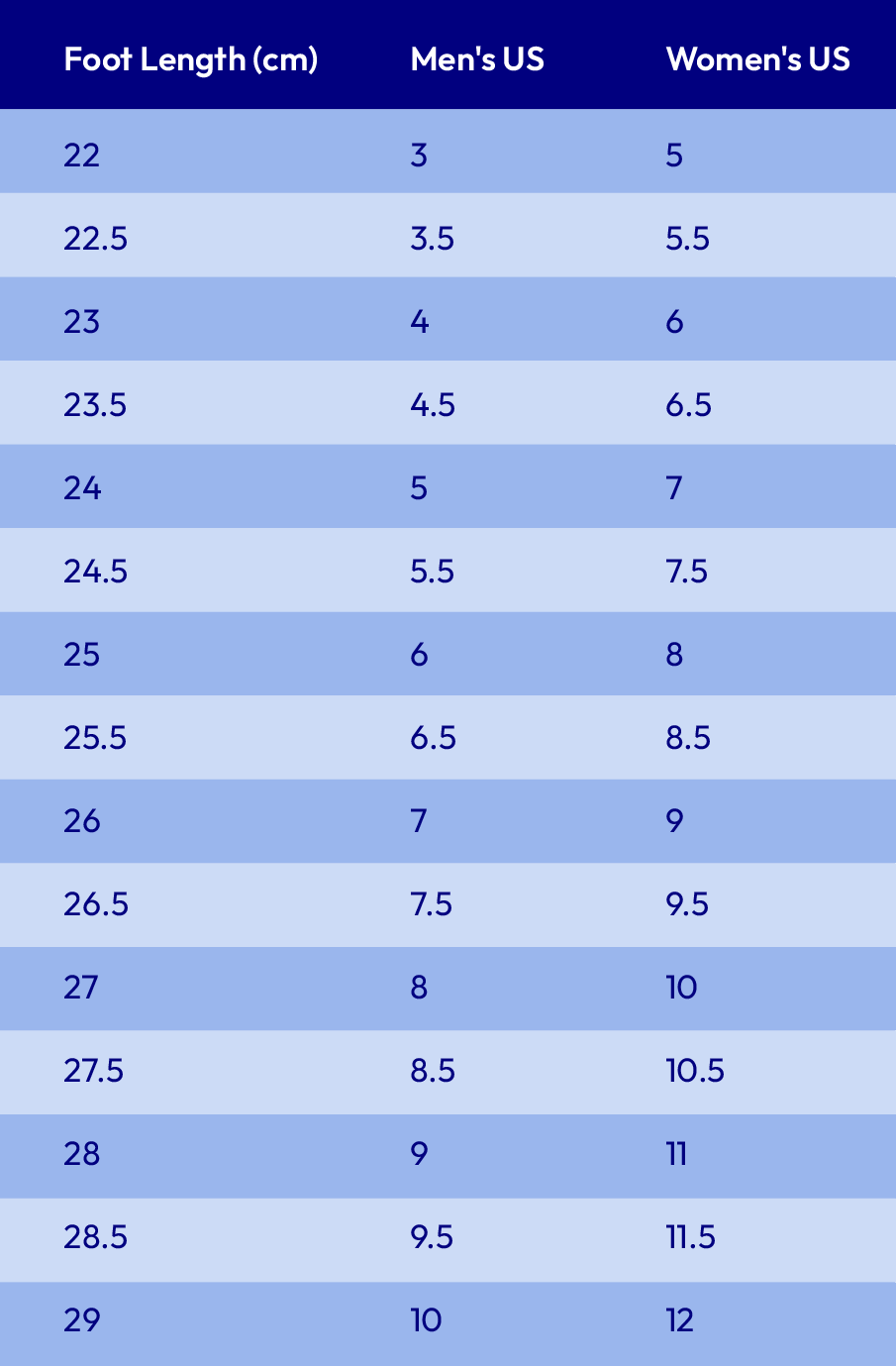 Foot Length (CM) to Men’s & Women’s Shoe Size Conversion