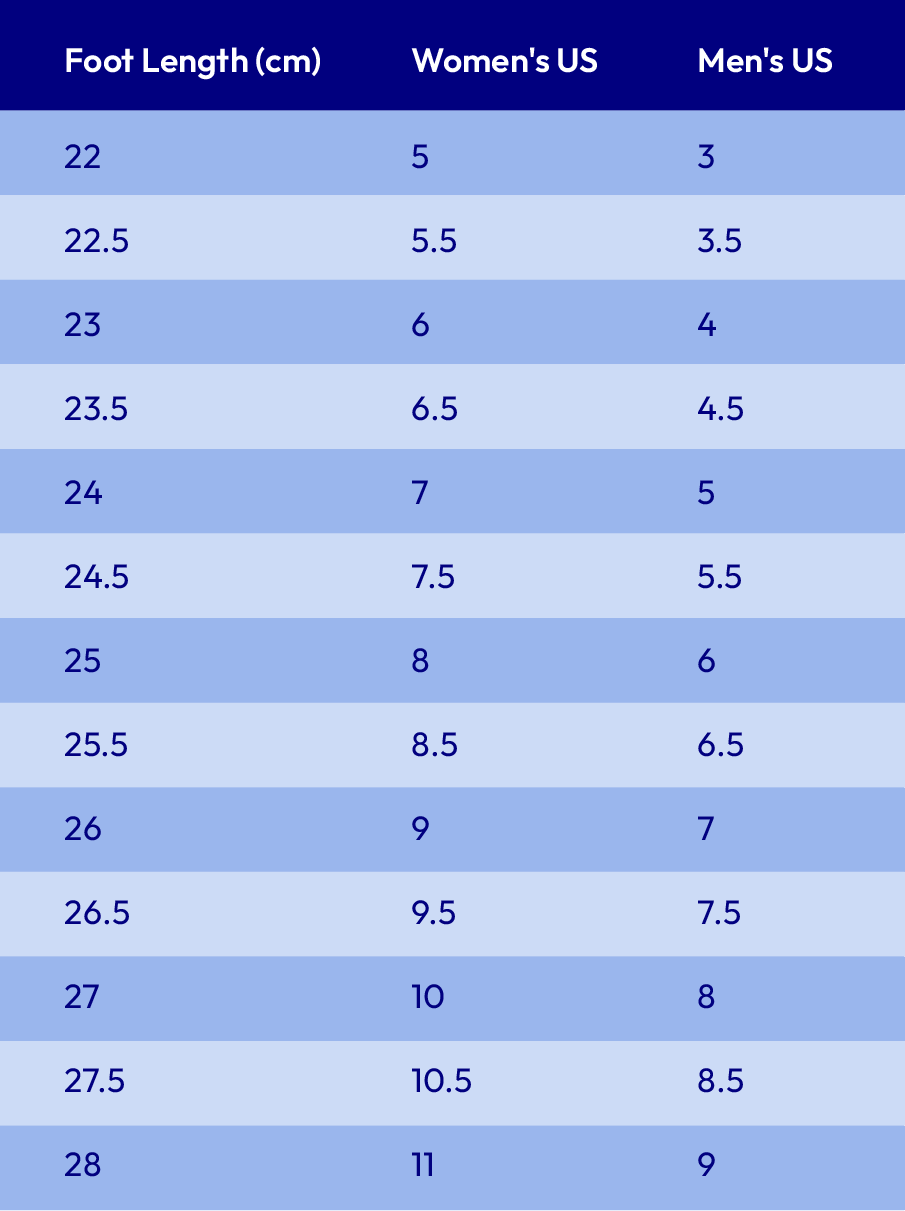 Foot Length (CM) to Women’s & Men’s Shoe Size Conversion