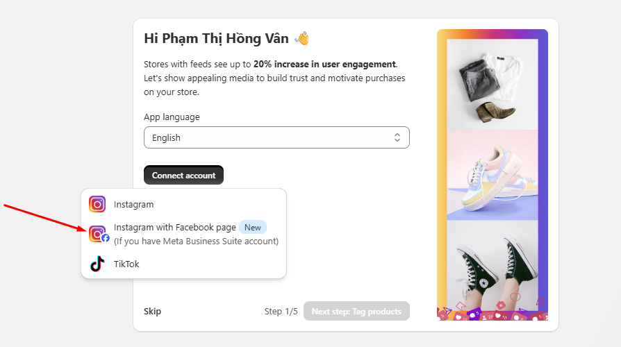 - Go to MP Instagram Feed in your Shopify admin, then click Connect Account.