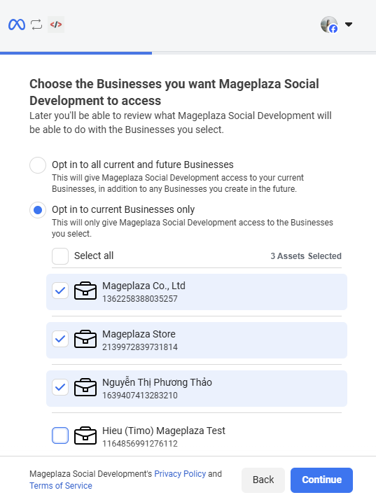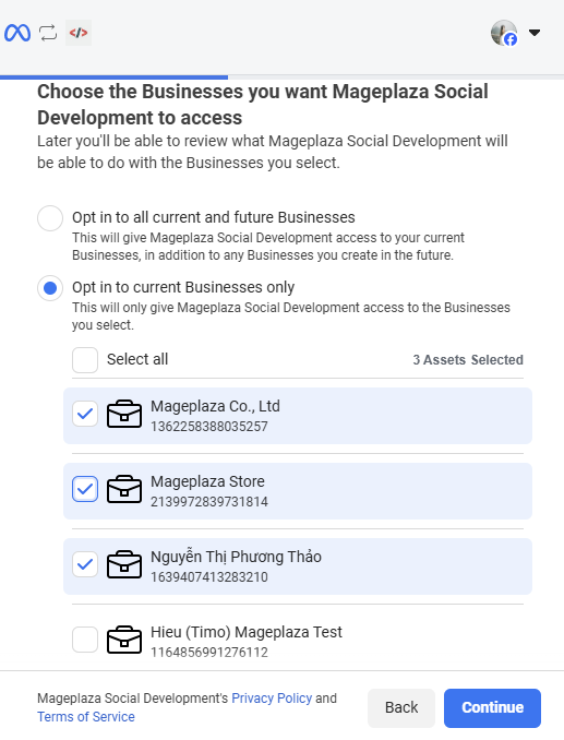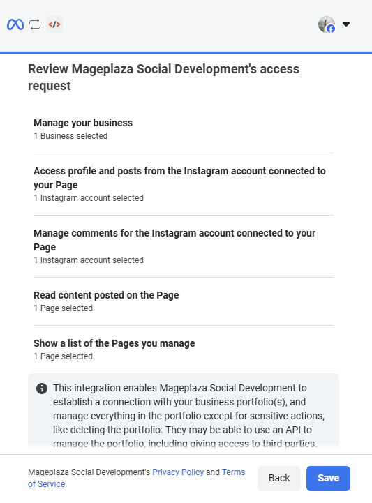 Important note: You need to select the correct accounts that are linked together to ensure our app has sufficient permissions to access your media, allowing the account connection and media sync to be successful.