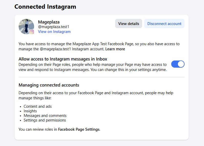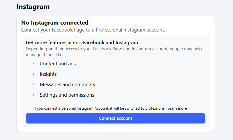 Once connected, your Instagram account will appear under the Linked Accounts section of your Page settings.