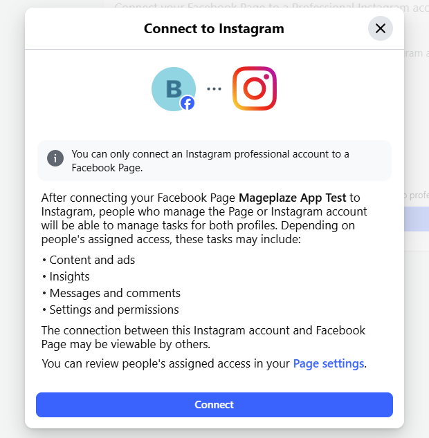 Follow the on-screen instructions to connect your Instagram account to your Facebook Page.