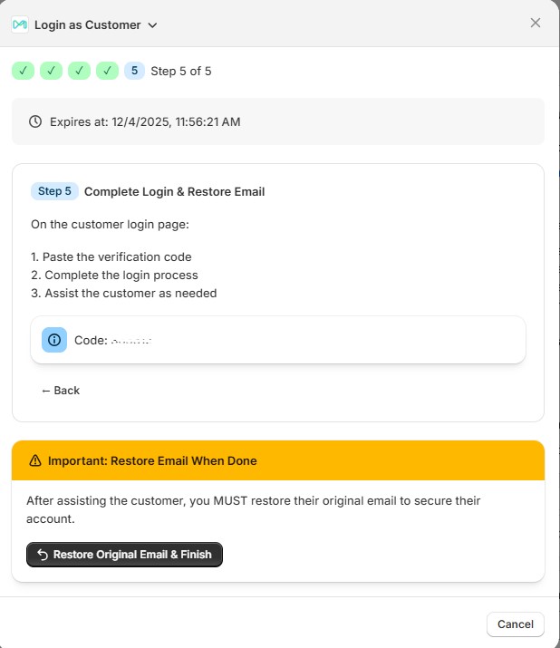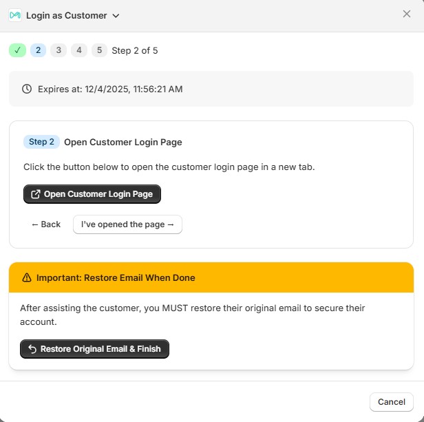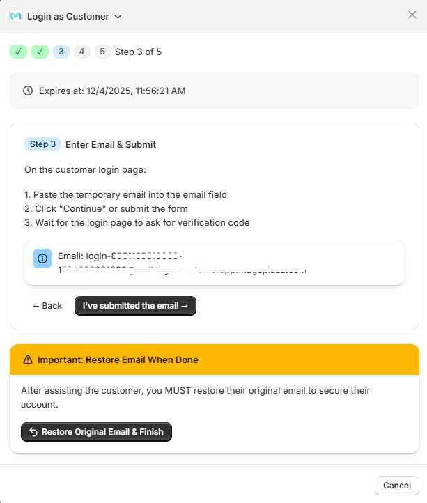 Shopify does not allow direct login to customer accounts, so the app uses a secure, temporary method to help you complete the login process.